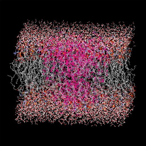 The ion permeation and the conformational state of the KscA channel have been the focus of theoreticians working in this field and noticeable progress in the understanding of these phenomena has already been achieved. Surprisingly few papers have been published where the hydration of the ion channel and the role of water in the transport of ions through its pore have been studied (e.g. L. Guidoni et al. FEBS Letters, 2000, 447, 37). The detailed structure and dynamics of water inside of KcsA ion channel is the primary focus of our investigation.We have followed examples from the previous literature (particularly, Chung, S.-H.; Kuyucak, S. Eur. Biphys. J., 2002, 31, 283) and developed a realistic model of KcsA, which is comprised from the channel forming protein imbedded into the lipid bilayer, bulk and “intrinsic” water and ions. In our analysis we will use the novel computational technique known as spatial distribution functions (SDFs). Relying on our previous experience in the investigation of hydration of amino- and hydroxy- groups in aqueous solutions of 1,2-disubstituted ethanes by means of SDF’s (A.V. Gubskaya and P.G. Kusalik, J. Phys. Chem. A, 2004, 108, 7151-7178), we will examine hydration patterns around selected polar groups on amino acid residues located in the cavity of KcsA. The hydrogen-bonding structure of “bulk” water inside the cavity will be compared with that from the hydration shell of the potassium ion and with that of a single water molecule located in the binding site of the filter.