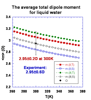 The total molecular dipole moment for liquid water